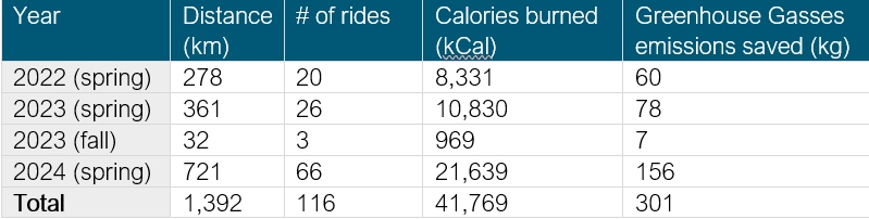 Employees from our different companies and corners of our province – new to the team or veteran riders – teamed up to ride 721-kilometres, nearly the distance from our Dawson Road Maintenance (DRM) yard in Clinton, to our yard in Smithers! With 66 rides, we also burned 21,639 calories and saved 156-kilograms of greenhouse gases!